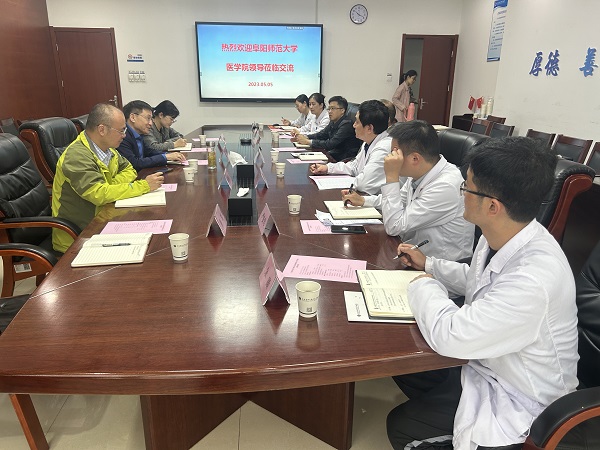 为进一步拓展校院合作的范围,促进医学院的学科专业建设和长远发展,2023年5月5日上午,阜阳师范大学阜阳医学院院长刘玉祥一行4人赴安徽医科大学附属阜阳医院进行考察交流,安徽医科大学附属阜阳医院党委书记孙其虎、院长胡孔旺等接待了刘玉祥一行。