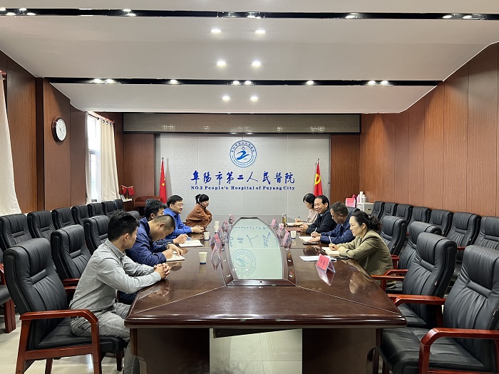 阜阳市第二人民医院院长韩明锋、副院长高勇等接待了刘玉祥一行,并对医院基本情况、今后发展方向及实习生管理等方面进行了介绍。刘玉祥对医院在实习教学方面的辛勤付出表示感谢,要求同学们不断夯实专业基础知识,锤炼临床技能,平衡好专业实习与考研之间的关系,圆满完成实习任务。石有武表示,将进一步加强与阜阳市第二人民医院的交流合作,也希望广大实习生珍惜机会,努力学习,同时要严格遵守医院各项规章制度,听从带教老师安排,认真、严谨地学习各项医学专业技术,为将来成为一名优秀的医学人才打下坚实的基础。会上,实习生代表还就近3个多月的实习工作、学习、生活等方面与老师做了汇报交流。双方人员还就如何进一步优化实习教学、加强学科建设和人才培养等方面进行了深入探讨。