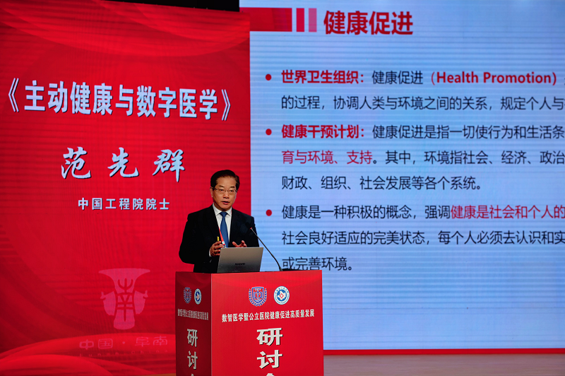 刘德培院士、范先群院士分别发表《智能社会管理 助力健康阜南建设》《主动健康与数字医疗》的主旨演讲。