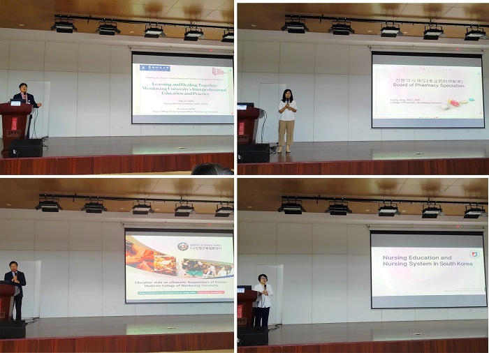 学术研讨会聚焦韩国医疗体系与圆光大学的教育创新。姜延锡教授介绍了圆光大学于1946年创立,陆续设立了1965年的药学系、1972年的韩医学系,并进一步开设了医学、牙医学及护理学系,同时建立了相关附属医院12所。截至2024年,圆光大学已成为韩国培养最多元化医学与生命科学人才的学府。该校作为韩国首家设立研究型孔子学院的高校,其学历获中国教育部认证,近三年累计培养中韩医学双学位人才230余名,成为东亚医学教育协同创新的重要基地。药学科院长宋庆教授解析了韩国六年制药学系与四年制韩药学系并行的双轨模式。近年来,韩国通过立法将"专业药师制度"正式纳入法制框架,强化药剂师在专科领域的专业能力,以应对医药行业的精细化发展需求。韩医学科院长金星撤教授介绍了超声波针灸技术的突破性进展,圆光大学已将超声波针灸技术纳入"现代针灸技法"课程体系,通过超声成像引导实现穴位精准定位、微创操作和能量调控的有机结合,显著降低了传统针灸对医师经验手法的依赖。护理学研究生院主任黄银姬教授阐述了韩国"专业化+人文关怀"的护理体系,在资质认证方面,该校依托与附属医院的深度校院合作,建立了严格的临床实践考核体系,推动护理操作标准化进程。圆光大学将韩医学"治未病"理念融入课程,并计划推进智能护理设备研发和跨国护理研究合作,展现了圆光大学在医疗教育现代化转型中的前瞻性实践。
