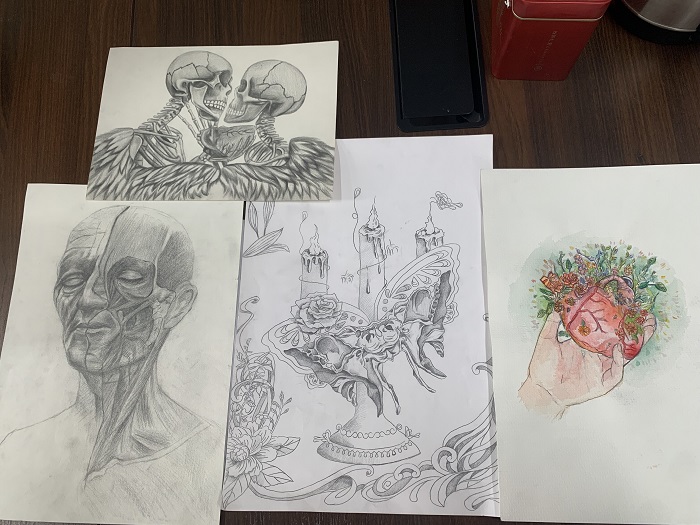 本次大赛历时近1个月,共收到100余件作品,参赛作品创作形式多样、创新思维活跃。同学们充分发挥自己的独特创意,用灵动的画笔将人体形态结构跃然纸上。大脑的细腻、心脏的生机勃勃、三叉神经的细致精巧都刻画地细致入微,展现了人体器官的艺术美。