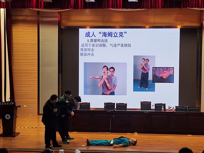 活动现场,在单人徒手心肺复苏的理论和实战教学环节,吴龙飞从为什么要现场徒手心肺复苏、怎么做心肺复苏、敢不敢做等几个方面来讲授,利用工作中遇到的实际案例告诉大家现场心肺复苏对抢救生命的意义,利用模拟人让大家自己去完成心肺复苏,实现了“敢做且能做”;在模拟成人被异物堵塞气道环节,吴龙飞重点对海姆立克急救法进行了实战教学,并纠正了海姆立克急救法常见错误动作,让大家印象深刻。