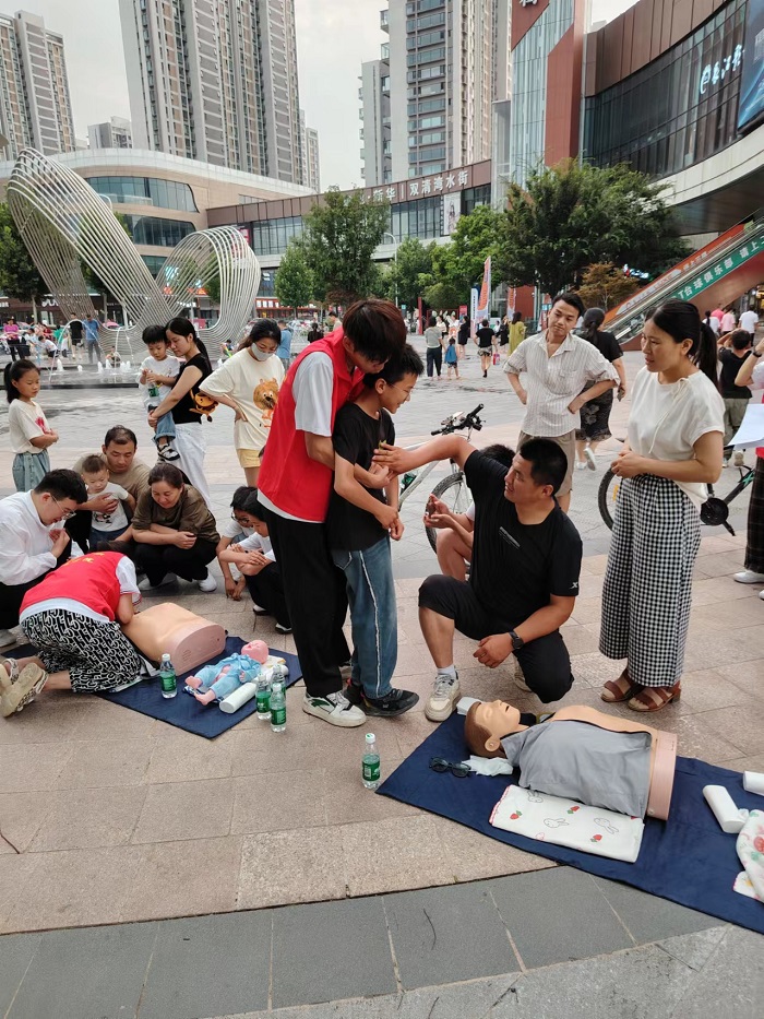 7月12日-13日,团队分别在港利安居苑、公路局家属院、港利上城国际以及双清湾水街等小区或街区开展了急救技能科普“地摊”活动。团队成员通过实操演练、手把手教学,帮助群众掌握心肺复苏、海姆立克急救法等技能,受到了现场群众的高度评价。现场参与群众纷纷说:“我觉得这些技能特别实用,简单、有效,这个活动方式特别好,很有必要”。