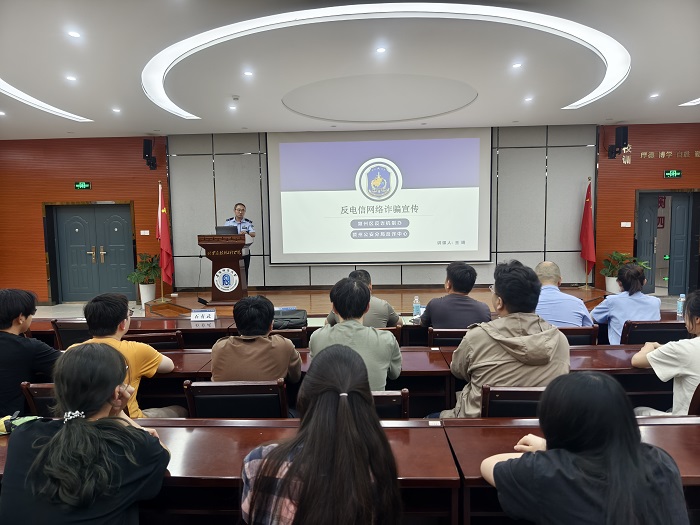 吴甲深度揭露电信诈骗产生及实施流程的“四部曲”,以心理学视角剖析受骗者侥幸心理,揭示诈骗分子利用信息差实施蒙骗的惯用伎俩。王琦通过鲜活的电信网络诈骗案例,系统梳理诈骗分子作案流程、危害后果,着重阐释“两卡”违法犯罪的法律责任,同时提醒学生保持警惕,及时清理可疑APP,从技术与意识层面双管齐下,筑牢反诈“防火墙”。