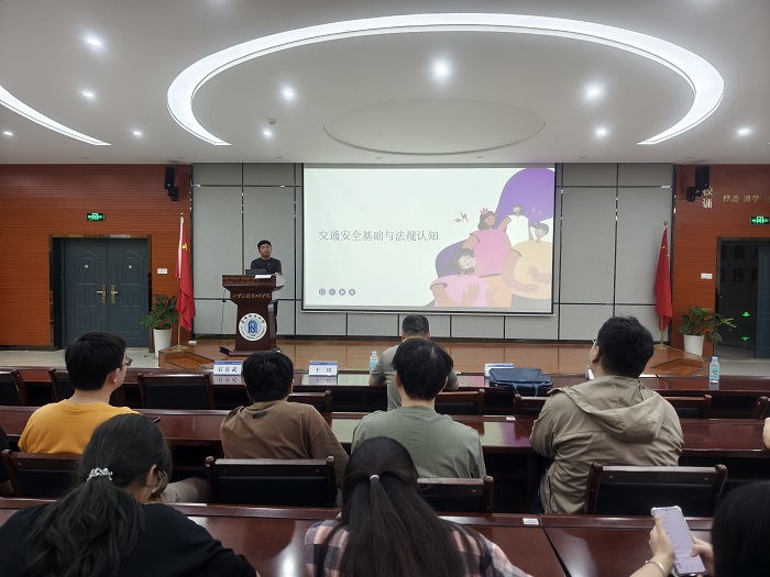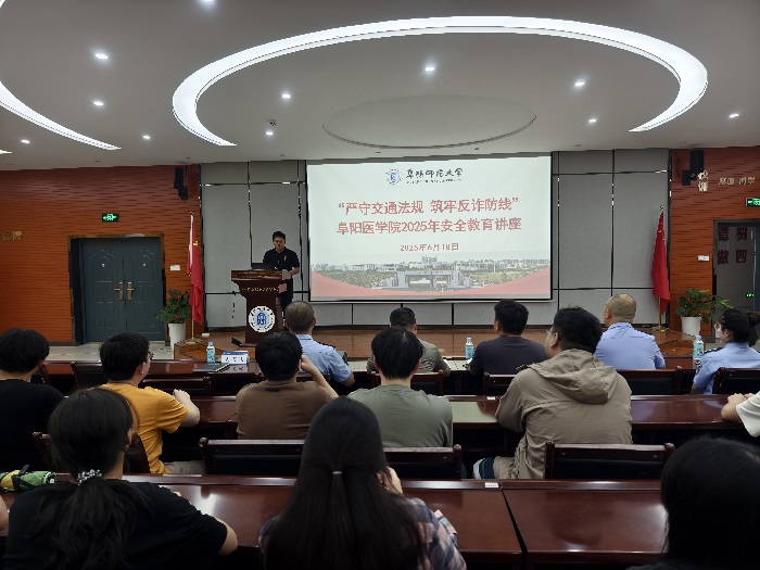 为增强学生的安全防范意识,提升学生的安全防范能力,阜阳医学院于6月18日 在新工科楼二楼报告厅举办了“严守交通法规 筑牢反诈防线”安全教育专题讲座。颍州区反诈机制办民警王琦、吴甲,颍西派出所民警李梦文、邵坤,颍泉区政协委员、飞龙驾校校长陈全,阜阳师范大学安全管理处处长周自勇、阜阳医学院党总支书记石有武,2024级全体学生、2022级和2023级全体寝室长参加活动,讲座由石有武主持。