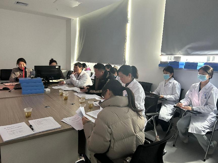为确保医学检验技术本科毕业论文(设计)工作顺利进行。2024年12月27日下午。由阜阳医学院和肿瘤医院科教科联合组织,在阜阳肿瘤医院(新区)检验科会议室,成功举办了医检本科论文开题。检验科主任王冰,检验科副主任刘伟,副高级检验师郭媛媛,以及医院科教科和阜阳医学院相关教师共同参与了此次开题答辩。