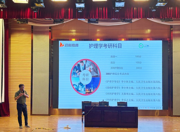 为帮助学院学生科学规划考研复习,5月9日下午,阜阳医学院在正行楼报告厅组织开展"2025年医学考研全程规划"专题讲座。本次活动特邀启航教育校长朱晓强、高级讲师王查利博士担任主讲嘉宾。学院党总支书记石有武、副院长段子才、辅导员、班主任及200余名学生共同参加了此次活动。