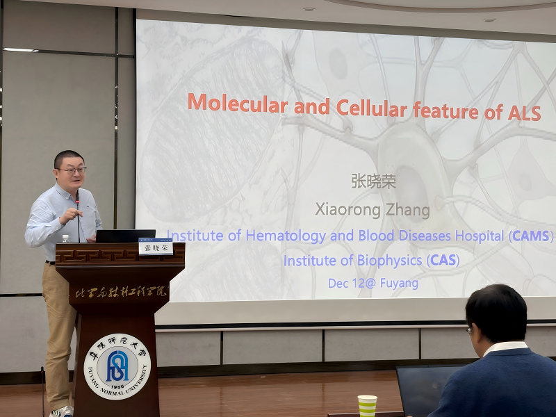 在热烈的掌声中,张晓荣研究员以“Molecular and Cellular feature of Amyotrophic lateral sclerosis(肌萎缩侧索硬化的分子与细胞特征)”为题,系统阐述了线粒体功能障碍、蛋白质质量控制异常在神经退行性疾病中的核心作用。她指出,线粒体作为细胞能量工厂,其稳态失衡可直接触发细胞命运决定机制,导致神经元损伤;通过创新性的单细胞测序与蛋白质组学技术,团队揭示了ALS中关键分子通路,为开发早期诊断标志物和靶向治疗提供了新思路。张晓荣研究员长期致力于线粒体与细胞命运决定、蛋白质质量控制及线粒体异常与重大疾病致病机制研究,其成果多次发表于《Cell》《Cell Research》《Nature Neuroscience》等顶级期刊,并获国家自然科学基金原创探索项目、重大研究计划及科技部重点研发项目资助,彰显了其在基础医学领域的深厚影响力。