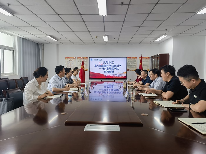 6月5日上午,阜阳职业技术学院康养护理学院院长亓新学、党总支副书记张蕾蕾、健康管理教研室主任岳峰、辅导员郎娇娇等一行4人来阜阳医学院交流座谈,阜阳医学院党总支书记石有武、院长刘玉祥、副院长陈德宇接待了亓新学、张蕾蕾一行并出席座谈会,座谈会由刘玉祥主持。