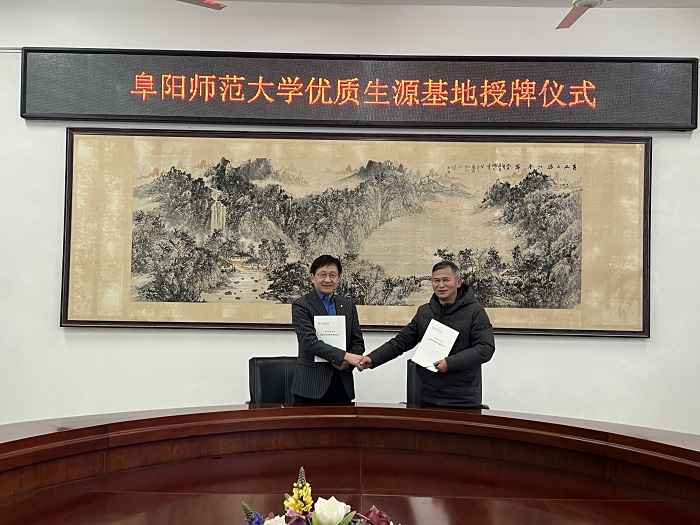 随后,双方代表共同签署了优质生源基地合作协议,并举行授牌仪式。这标志着广德中学正式成为阜阳师范大学优质生源基地,两校将在教育领域开启新的合作篇章,共同探索创新人才培养模式,为学生的成长成才搭建更广阔的平台,助力更多学子逐梦前行,迈向新征程。