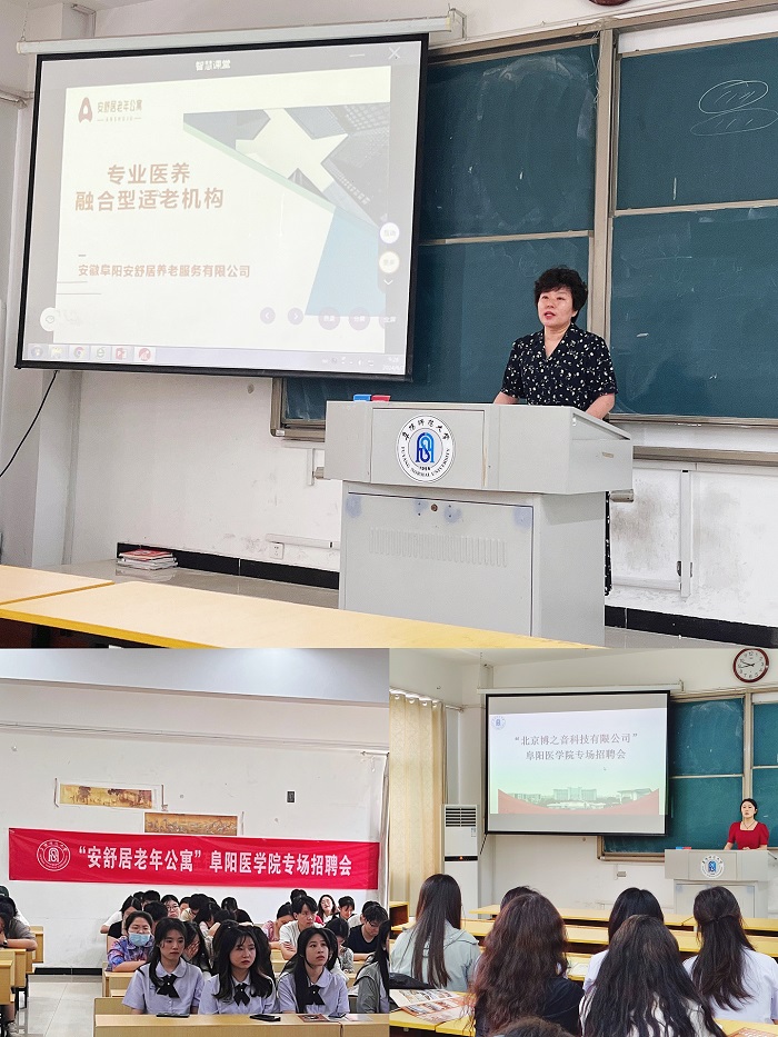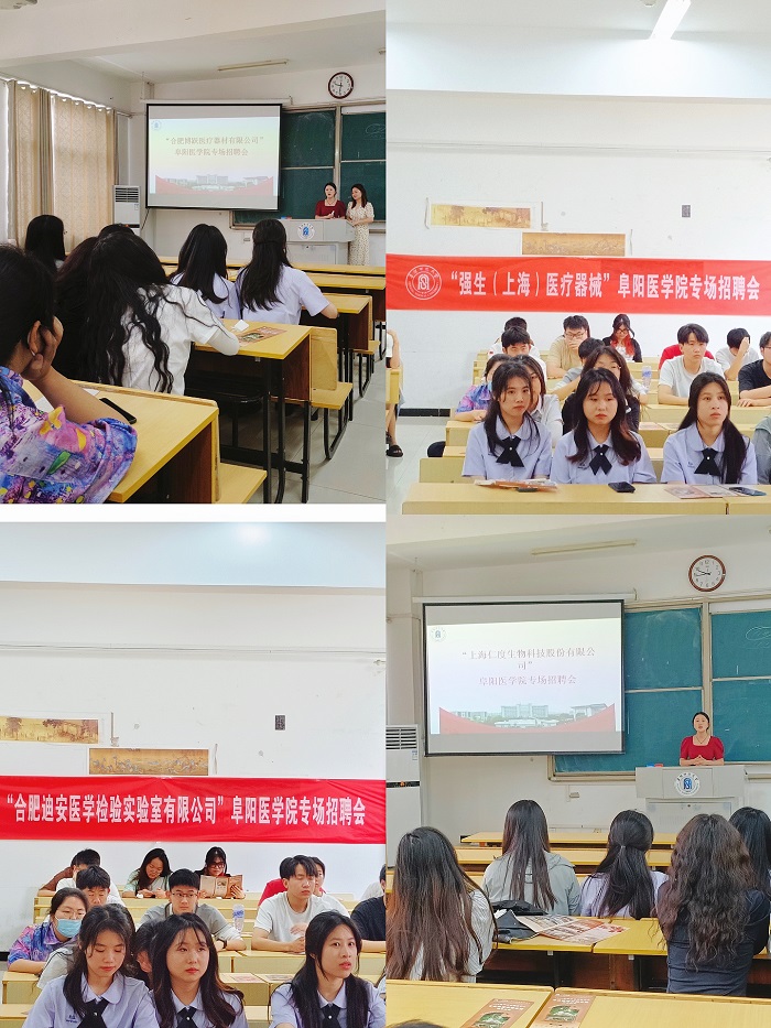为了切实做好2024届毕业生高质量就业工作,拓宽就业渠道,搭建用人单位与毕业生之间更好的交流平台,6月7日上午,阜阳医学院在汉风A楼101教室举办了专场招聘会,邀请安舒居老年公寓、强生(上海)医疗器械有限公司、合肥迪安医学检验实验室有限公司、合肥博跃医疗器械有限公司、上海任度生物科技有限公司、北京博之音科技有限公司等多家用人单位参加。学院两个专业2024届毕业生参加了招聘会。