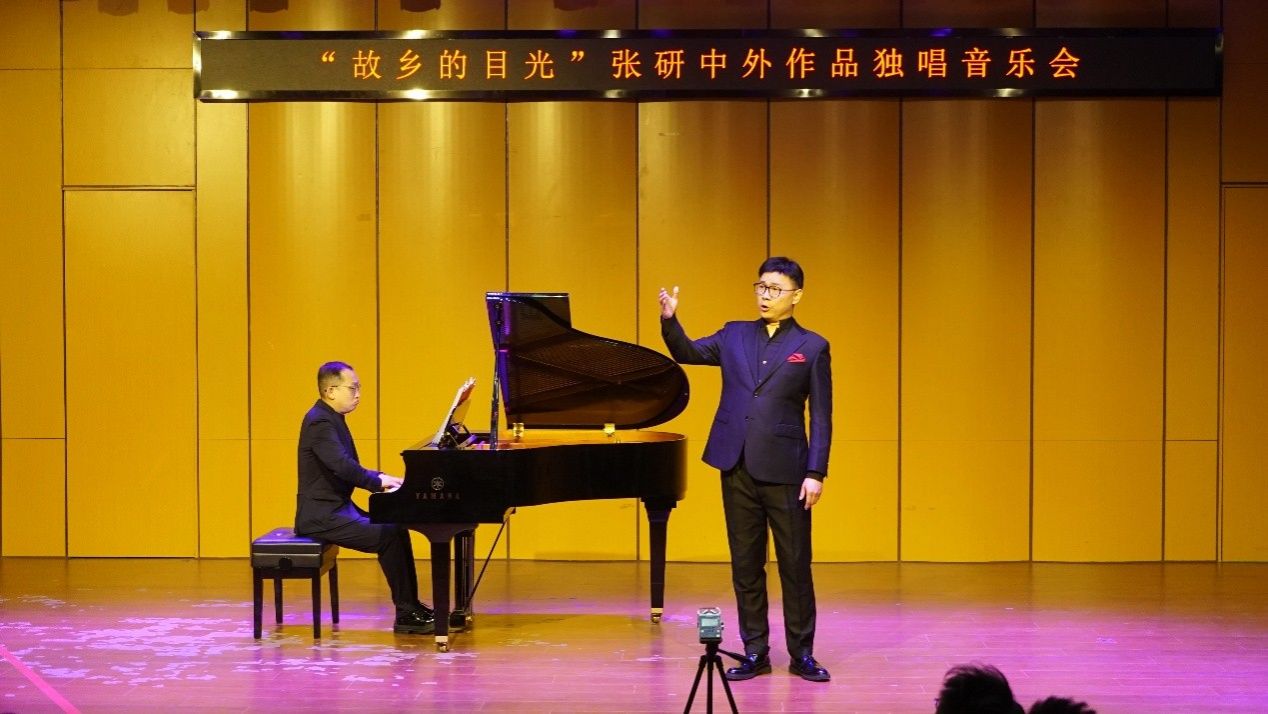 本场音乐会以“故乡的目光”为核心立意,承载着张研对音乐生涯的深情回顾,饱含对恩师侯方教授的感恩之情,以及对阜阳这片故土的深深眷恋。张研以《大江东去》《沂蒙山》选段等经典中国声乐作品抒发深沉的家国情怀,同时通过舒曼《诗人之恋》套曲及罗西尼歌剧《塞维利亚理发师》选段《快给大忙人让路》等作品,展现了异域音乐的魅力。曲目横跨时空与国界,充分展现了抒情男中音的戏剧张力:从中国古诗词艺术歌曲《春花秋月何时了》,到德国艺术歌曲《诗人之恋》之《在灿烂鲜艳的五月里》,再到意大利歌剧《安德烈·谢尼埃》选段《他是祖国的敌人?》。