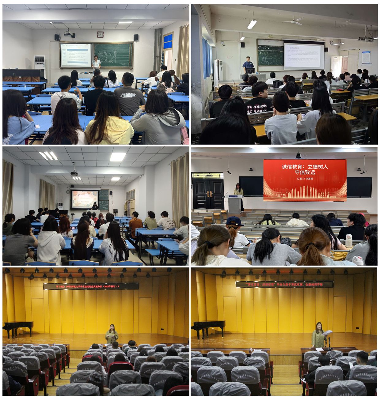 学院分类施策:组织非毕业班19个班级召开“诚信立身,励志成才”主题班会,普及征信与反诈知识,覆盖600余人次;针对毕业生举办以“贷走青春 还来信用”为主题的年级大会,详解助学贷款毕业确认、还款流程及征信重要性,发出《诚信还款倡议》并现场答疑。
