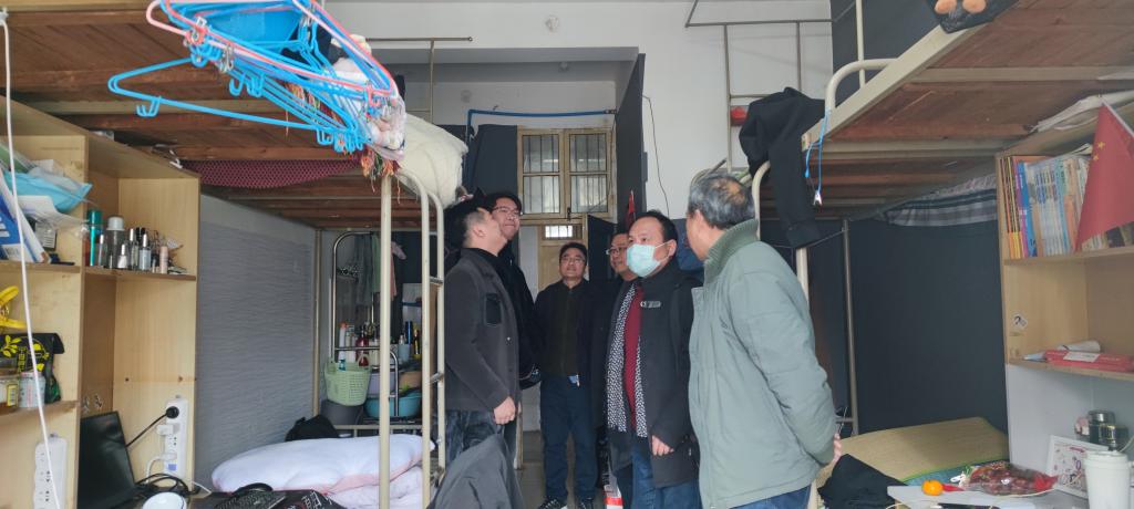 学院对当日返校的学生宿舍进行了逐一走访。走访中,学院领导、老师仔细查看学生宿舍的生活设施、清洁卫生、物品摆放、宿舍环境以及用电安全等方面的情况,反复叮嘱学生要增强安全防范意识,注意防火防盗,保持室内清洁以及日常通风,做好疫情防护,建议同学们合理安排自己的时间,认真学习,积极参加实践活动,注重劳逸结合,加强流行性疾病的预防,营造积极健康的宿舍文化,保持身心的健康发展。程建详细询问学生们返校的交通方式、行程、路途防护等情况,并就学生的寒假生活进行了交流,特别提醒大家要抓紧时间,调整状态,迎接即将到来的考试。