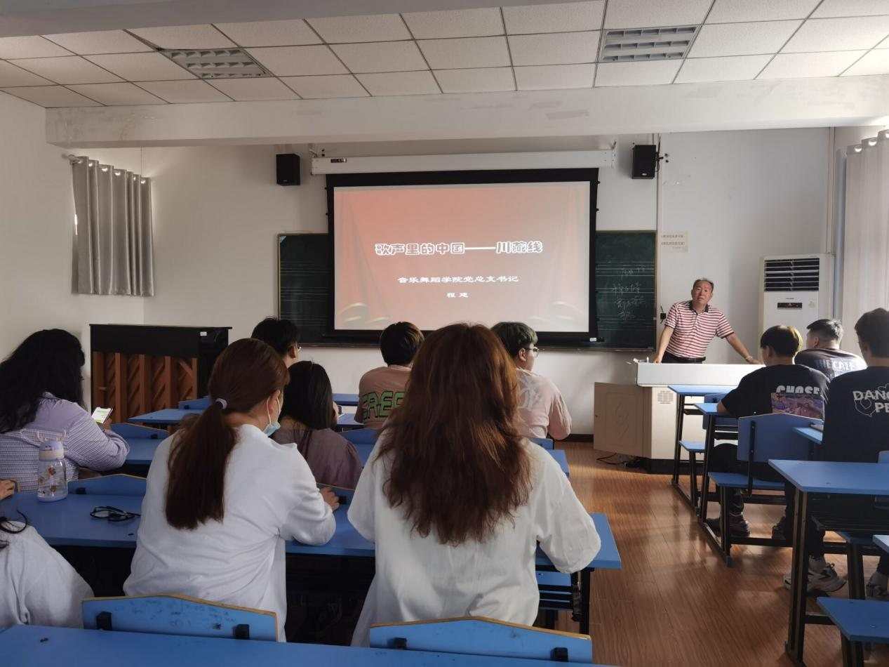 5月31日,音乐舞蹈学院党总支书记程建在韶华楼303教室以“歌声里的中国--川藏线”为题,为学院学生党员及学生代表开展党史宣讲。
