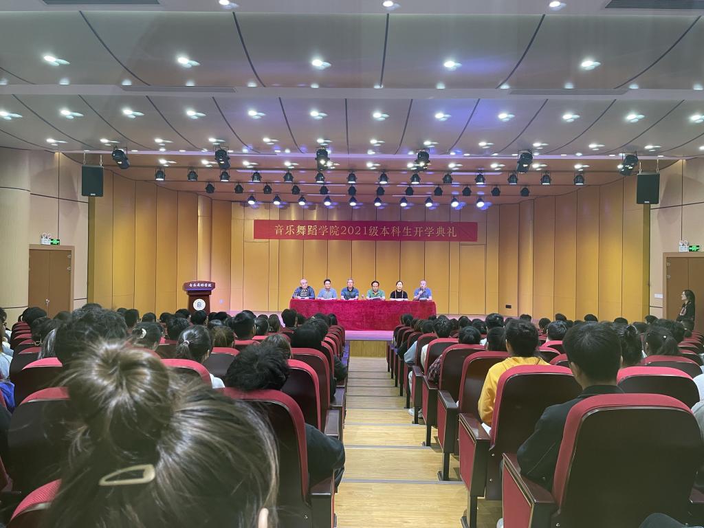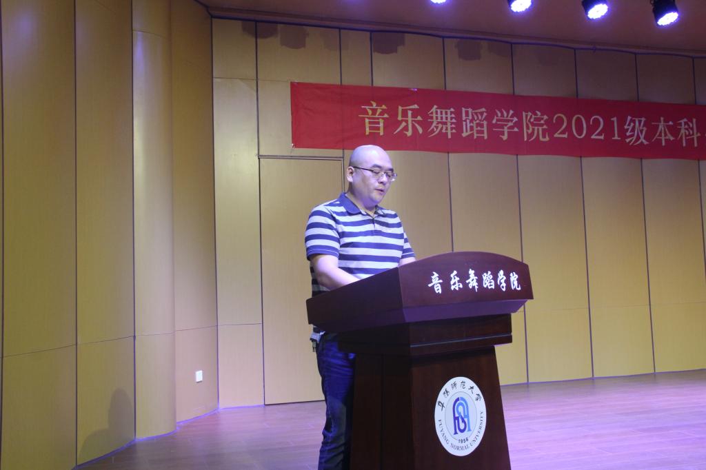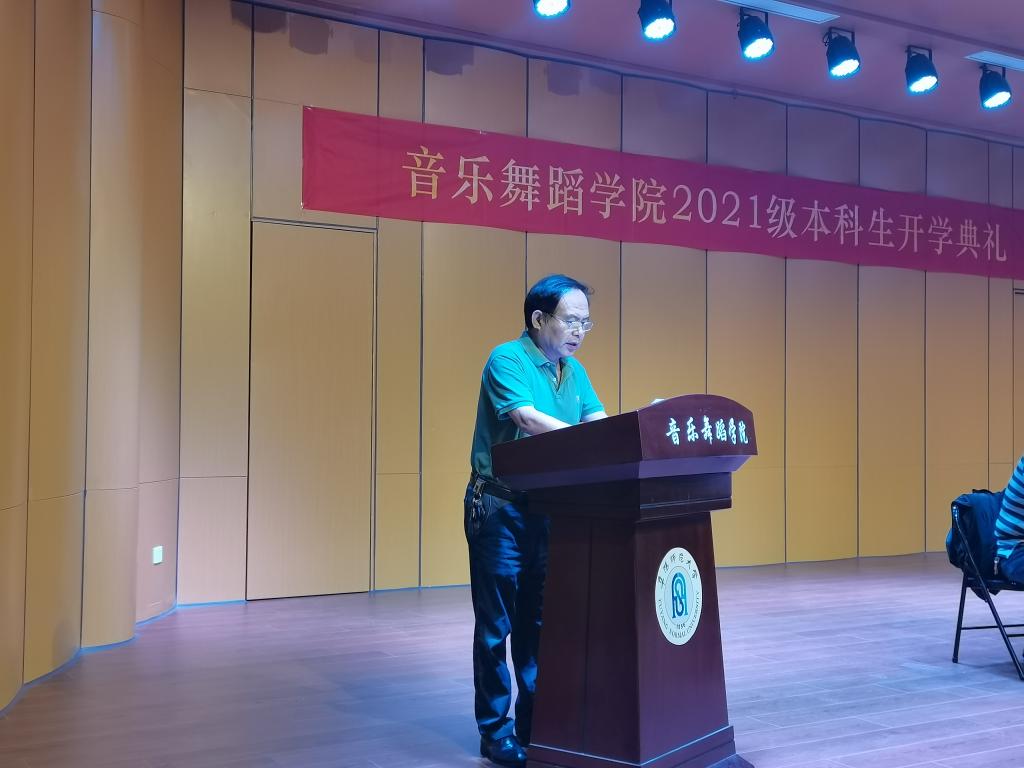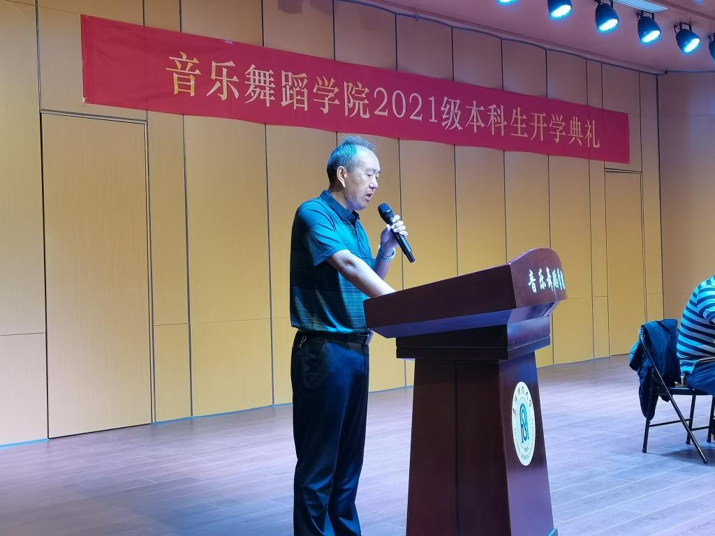 9月29日,阜阳师范大学音乐舞蹈学院2021级新生开学典礼在韶华楼音乐厅举行。学院党总支书记程建、院长侯方、优秀教师代表宋延雷、任杰出席典礼。典礼由党总支副书记马玉海主持。