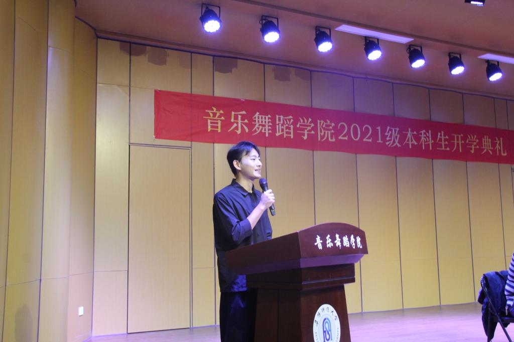 宋延雷用他多年的教学经验告诉同学们,凡是“预则立,不预则废”,要规划好大学四年的生活。要在读什么书、走什么路、做什么人上做出睿智选择,把握好自己的发展方向。在校生代表2018级音乐学3班李长政同学分享了自己的大学成长经历,告诫学弟、学妹要“珍惜分分秒秒,用心面对生活”。新生代表2021级音乐学4班席欣雨表达了同学们在新的校园,将会心怀梦想,用努力和拼搏,绽放精彩的青春。