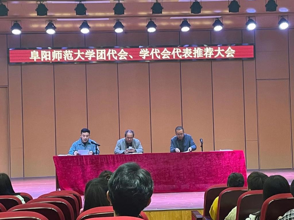 2021年11月3日阜阳师范大学团代会 、学代会代表推荐大会在小礼堂正式召开。此次大会有院党总支书记程建 、党总支副书记马玉海 、辅导员薛程文出席 。仪式由党总支副书记马玉海主持。