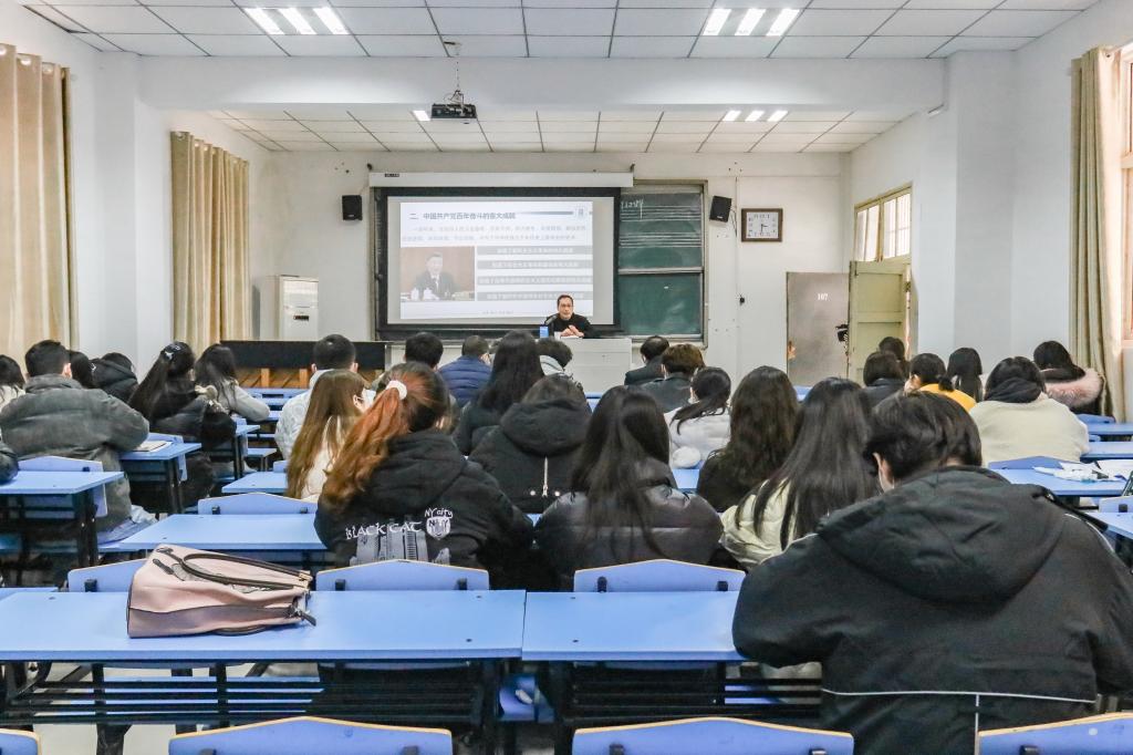 2021年12月7日下午,学校理论宣讲团成员、教学质量管理处处长房正宏走进音乐舞蹈学院宣讲党的十九届六中全会精神,全体教职工及学生党员参加宣讲会,宣讲会由学院党总支书记程建主持。