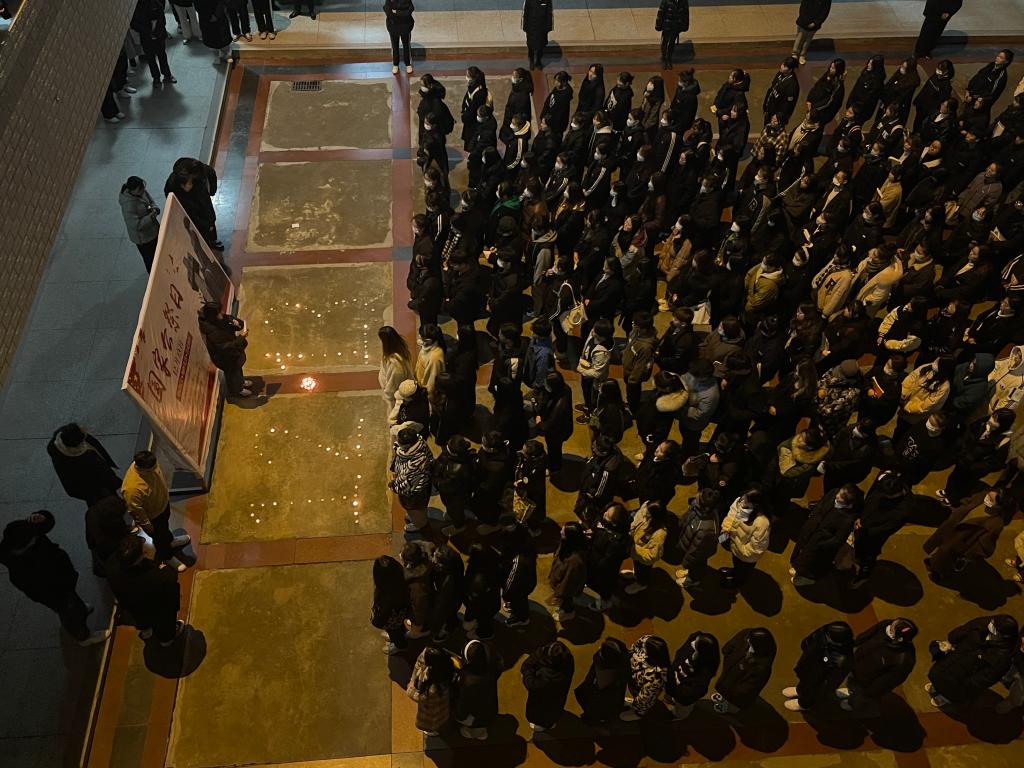 参加此次悼念活动人员由2021级辅导员薛程文老师及各级学生组成,活动于韶华楼广场准点进行。