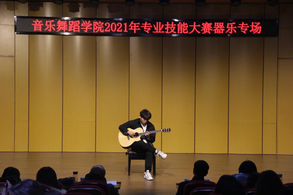 12月20日开展器乐技能大赛,本次比赛器乐种类丰富多样,有西洋乐器大提琴、小军鼓、吉他,还有中国的传统乐器笙、竹笛、古筝、扬琴、琵琶。本次大赛在观众们的期待中开始,一首以白居易《长恨歌》为素材改编而成的古筝曲《霓裳诉》,通过学生娴熟的手法将作品的婉转悠扬演绎的淋漓尽致,惊艳全场。紧接着出场的选手熟练的琵琶轮指再现了“大珠小珠落玉盘”的如泣如诉,用琵琶声道出了“同是天涯沦落人”的情愁。接下来轻松明快的指弹吉他、低沉响亮的大提琴、婉转悠扬的竹笛,在彰显学生娴熟技法的同时体现了学生对作品精神内核的诠释。