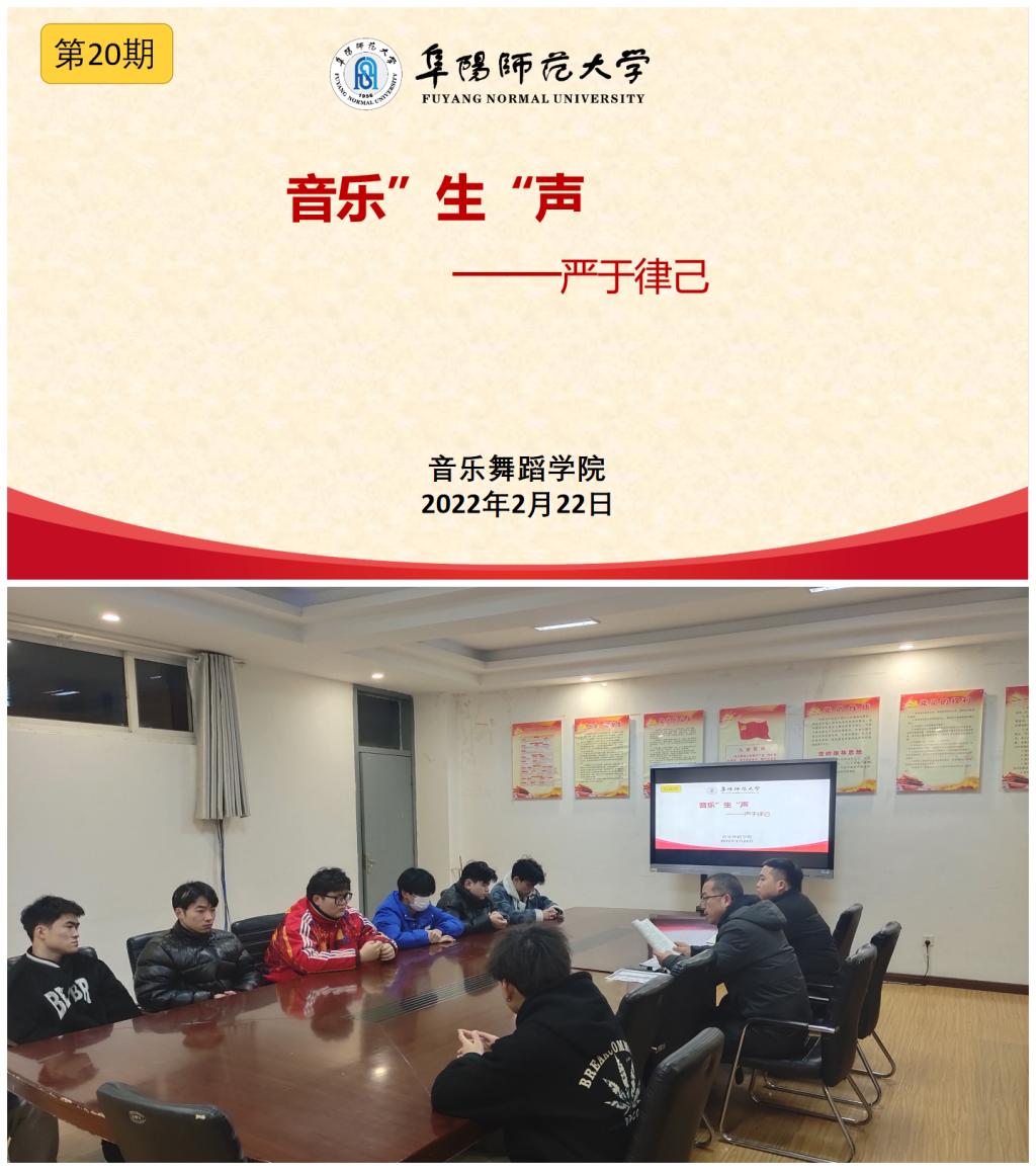 2022年2月22日晚7点,音乐舞蹈学院新学期第一期音乐“生”声交流活动在清河校区韶华楼203会议室举行,十余名学生参交流会,学院党总支副书记马玉海参加会议。交流会由团总支负责人薛程文主持。