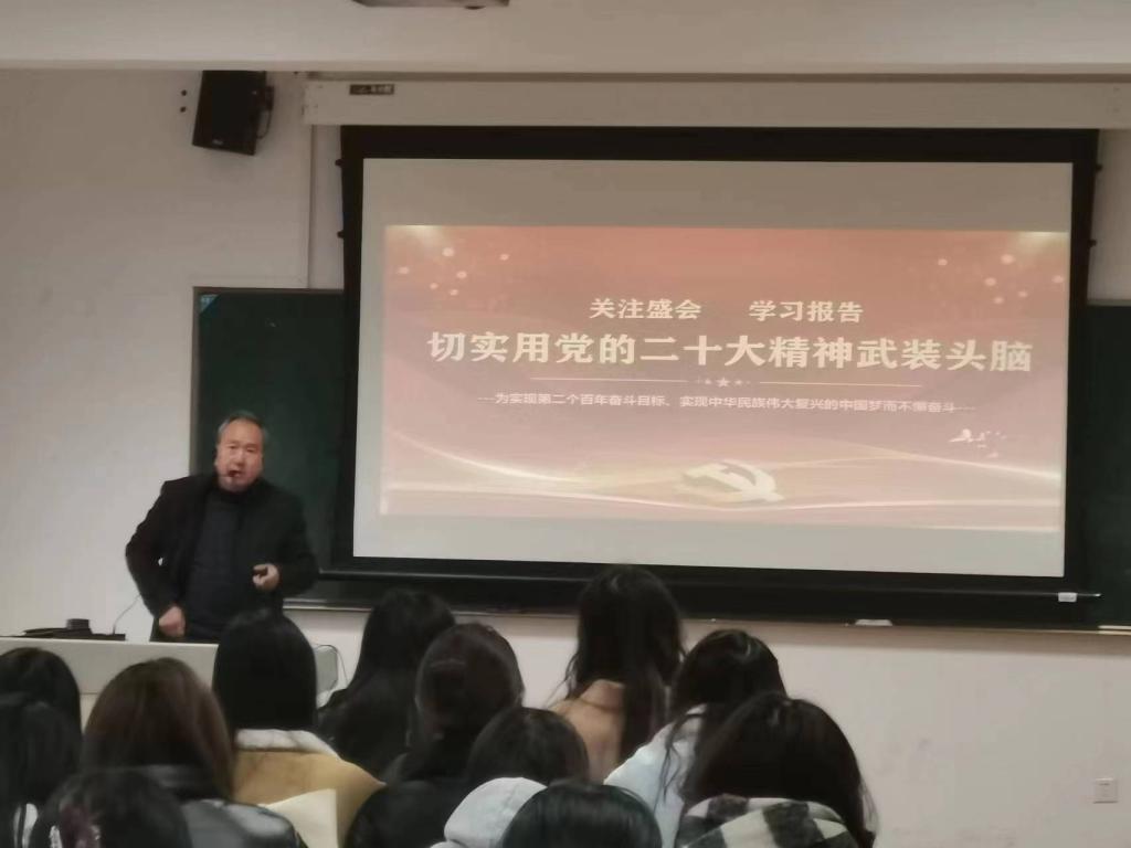 为深入学习宣传贯彻党的二十大精神,切实把全院师生的思想统一到党的二十大精神上来,把力量凝聚到党的二十大确定的各项任务上来,11月30日下午,音乐舞蹈学院在韶华楼302教室举行学习贯彻党的二十大精神党总支书记讲党课活动。全体学生党员、21级入党积极分子、各班级团支部书记、思政委员100余人通过线上线下相结合的方式参加了会议。