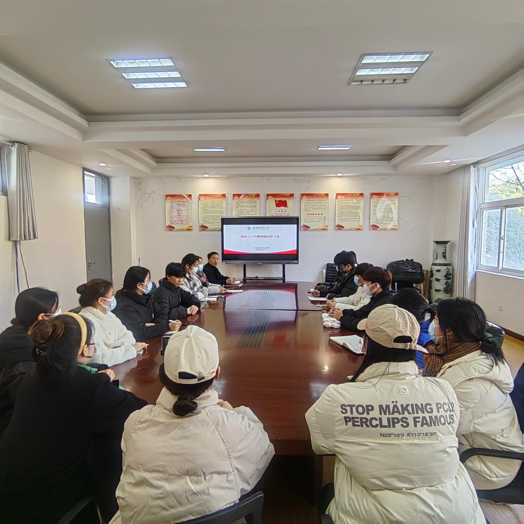 为深入学习贯彻党的二十大精神,切实把思想和行动统一到党的二十大精神上来,12月5日中午,学院团委召开党的二十大精神理论学习会。学院团委负责人、各班团支部委员会委员、入党积极分子40余人在203会议室通过线上线下相结合的方式参加会议。会议由学生兼职副书记王雅婷主持。