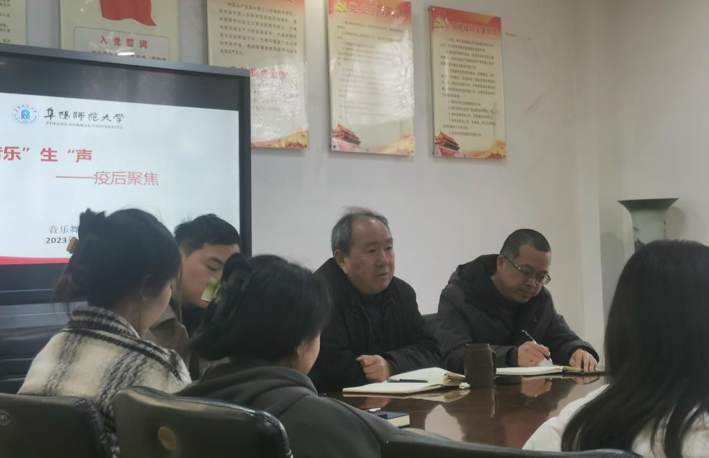 时光向前,我们迎来了久违的新学期,疫后的第一个学期。为了更好的落实省委“一改两为”精神,夯实工作基石,做好疫后学生工作。3月1日下午,音乐舞蹈学院“音乐‘生’声”师生交流平台新学期第一期如期开展,共有来自四个年级的22名同学参加交流会。学院党总支书记、副书记马玉海、团委负责人薛程文参加会议。交流会由党总支副书记马玉海主持。