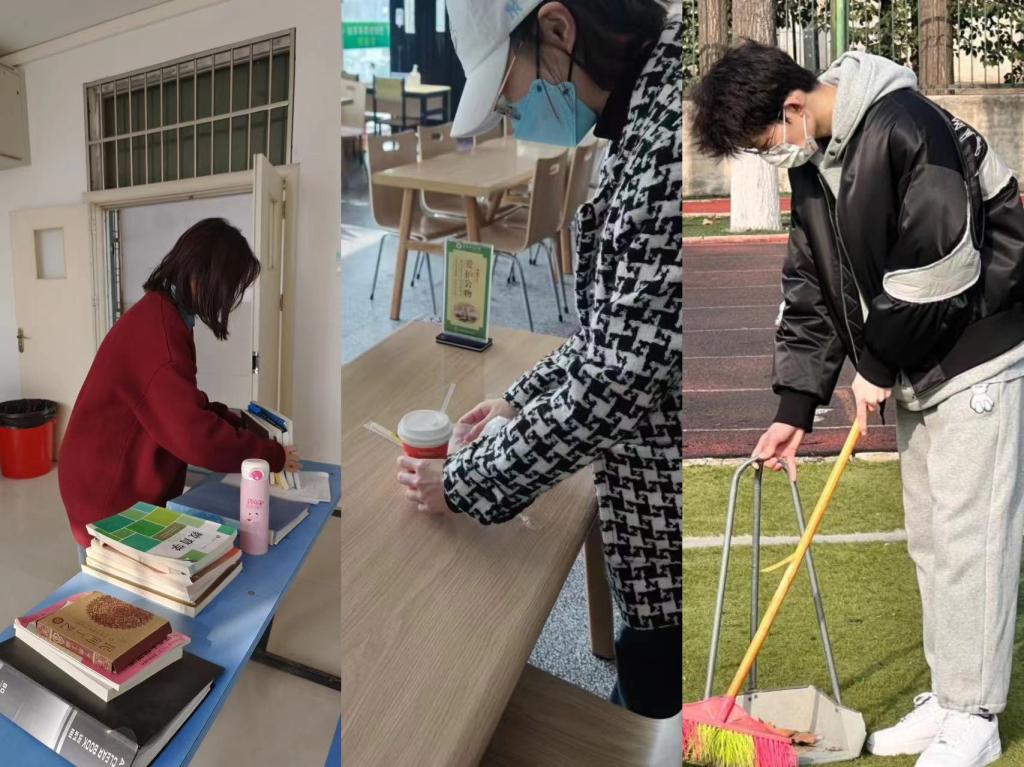 上午八点半,志愿者在韶华楼门口集合,根据人数进行分组,每组会由青协部长带领,对校园各个地点进行卫生清扫,并将“共建文明校园,劳动最光荣,厉行节约,反对浪费”标语张贴在东清苑与西清苑食堂。活动中同学们积极参加,各组同学分工明确,不仅清理干净了校园,还增加了同学之间的友谊。