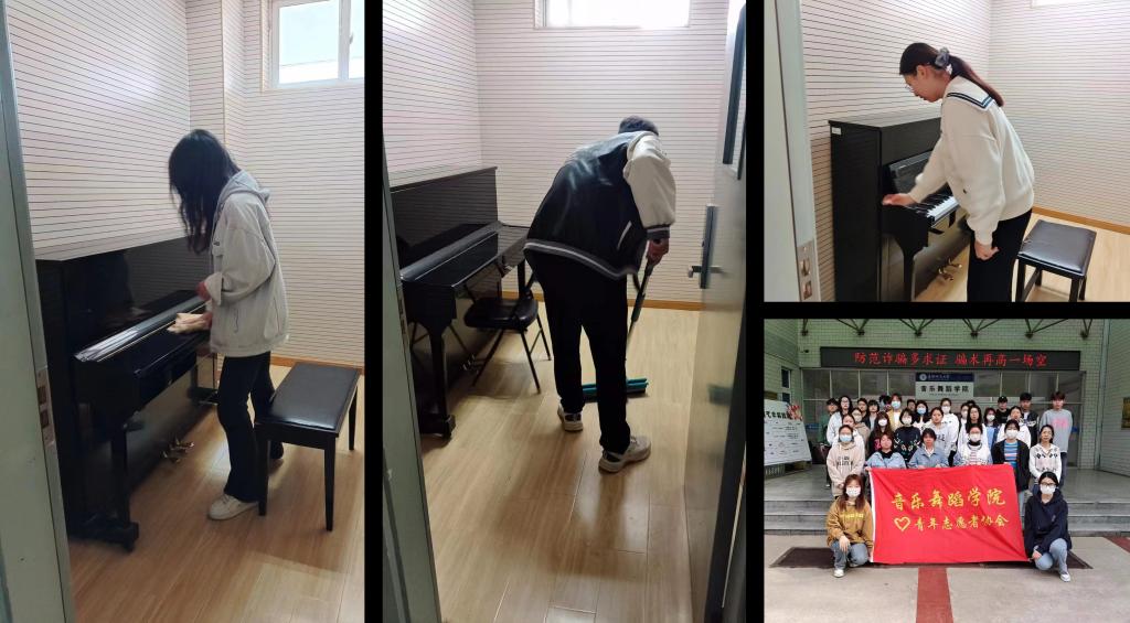 琴房是我们音乐舞蹈学院学生学习和练习的重要场所,琴房的整洁与每位学生有着密不可分的联系,好的环境可以使学生更加精气神,为了营造一个舒适整洁的琴房环境,营造良好的练琴氛围。4月8日,学院青年志愿者协会在韶华楼琴房开展志愿清扫活动。