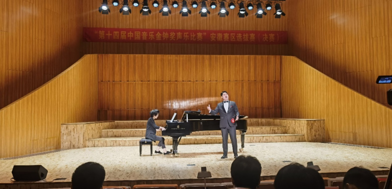 4月28日,由安徽省音乐家协会主办的“第十四届中国音乐金钟奖声乐比赛”安徽赛区选拔赛(决赛)在安徽艺术学院落下帷幕,音乐舞蹈学院2018届优秀毕业生夏德奇以复赛排名第一的成绩进入决赛,决赛以9.85分的好成绩取得美声组第一,获得直进金钟奖全国复赛的资格。