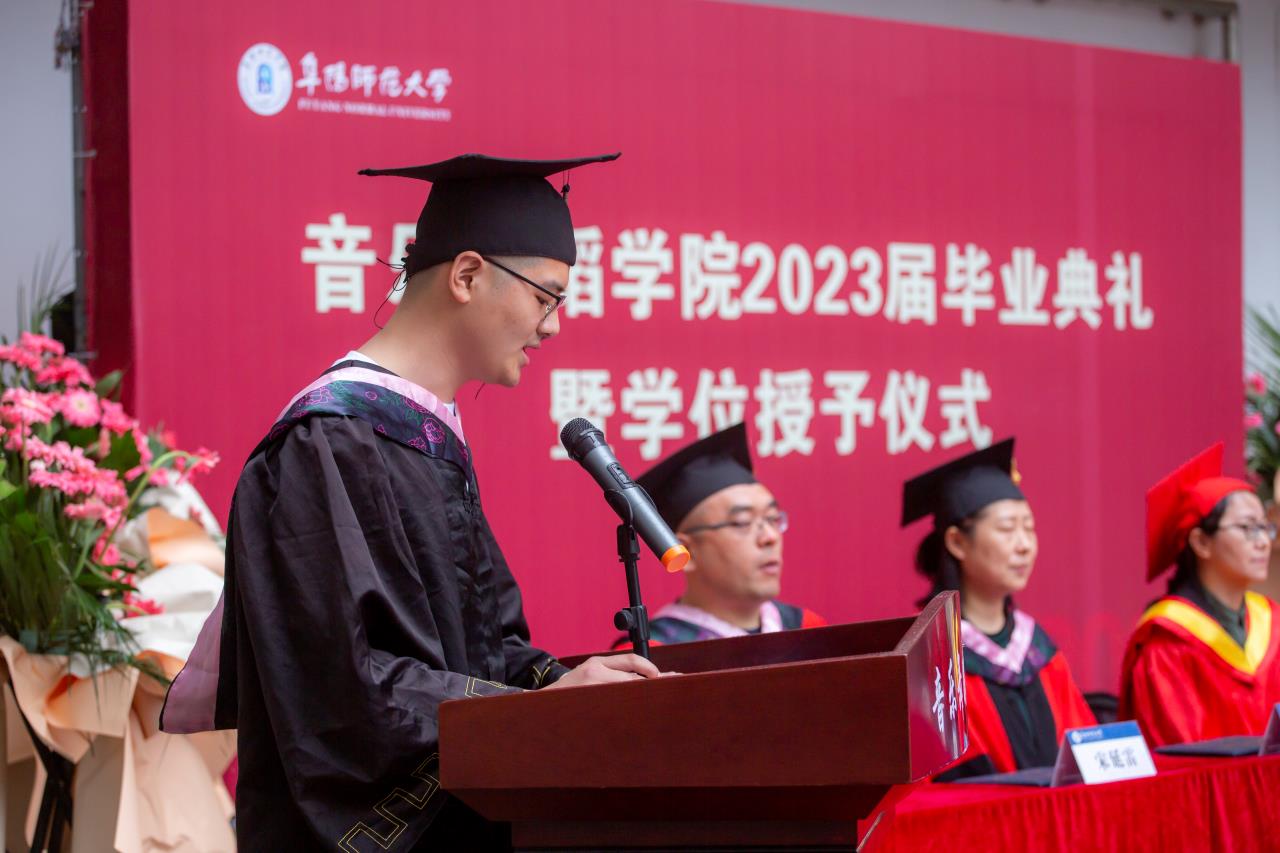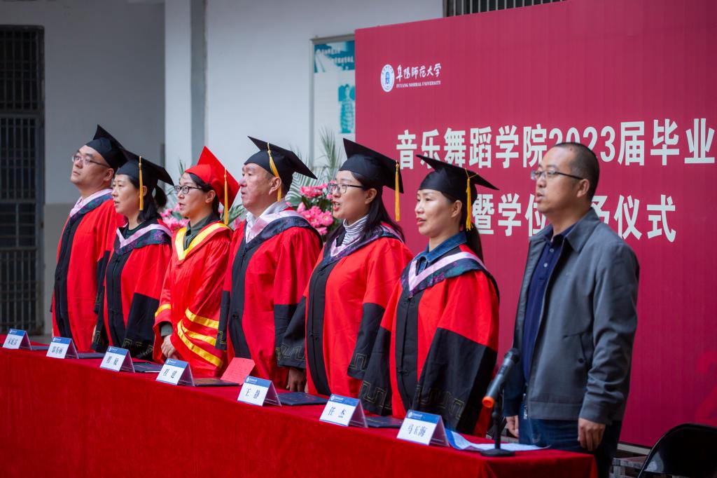 蕙风如薰,花开半夏,骊歌轻起,青春不散。5月10日下午,音乐舞蹈学院2023届本科生毕业典礼在韶华楼内广场举行。学院党总支书记程建、副院长程敏、党总支副书记马玉海、各教研室主任及2023届全体毕业生出席。典礼由马玉海主持。