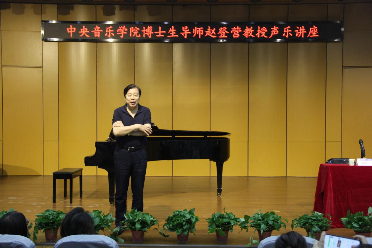 讲座以“人体发声原理、人声乐器塑造、演唱吐字归纳、中外作品音乐风格、舞台演绎”为内容,并现场对演唱师生做出指导。赵登营用幽默诙谐的言语将自己在生活中看到的大家对于声乐发声方法的讨论做出了中肯的评价,提出学习声乐的要点并不是一流的嗓子,而是一流的大脑,要学会用辩证的思想来学习声乐,并提出声乐学习的方法不是绝对的,各位教师在教学中要因材施教,学生在学习上也要找到适合自己的方法,讲解过程中赵登营的解答通俗易懂,简洁精准,赢得了全体师生的阵阵掌声。