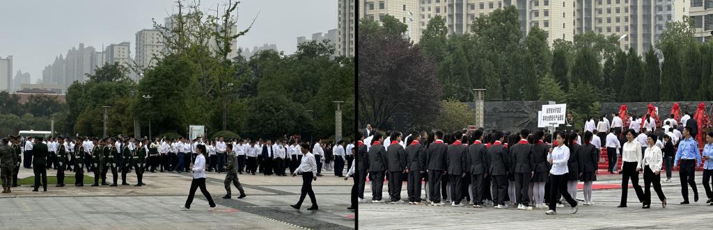 同学们经过三天的集中培训,将整个志愿服务活动流程熟记于心。9月30日上午,他们早早赶到和平公园广场,怀着一颗敬畏的心站在烈士纪念碑前。