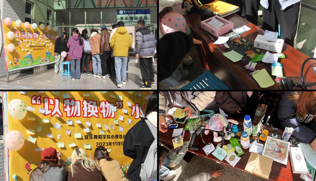 为进一步放松学生身心,增强同学之间情感交流和沟通协作,缓解学习压力,丰富校园文化生活,11月19日,音乐舞蹈学院于清河校区韶华楼一楼开展以“让爱循环,旧物新生”为主题的以物易物小市场活动。
