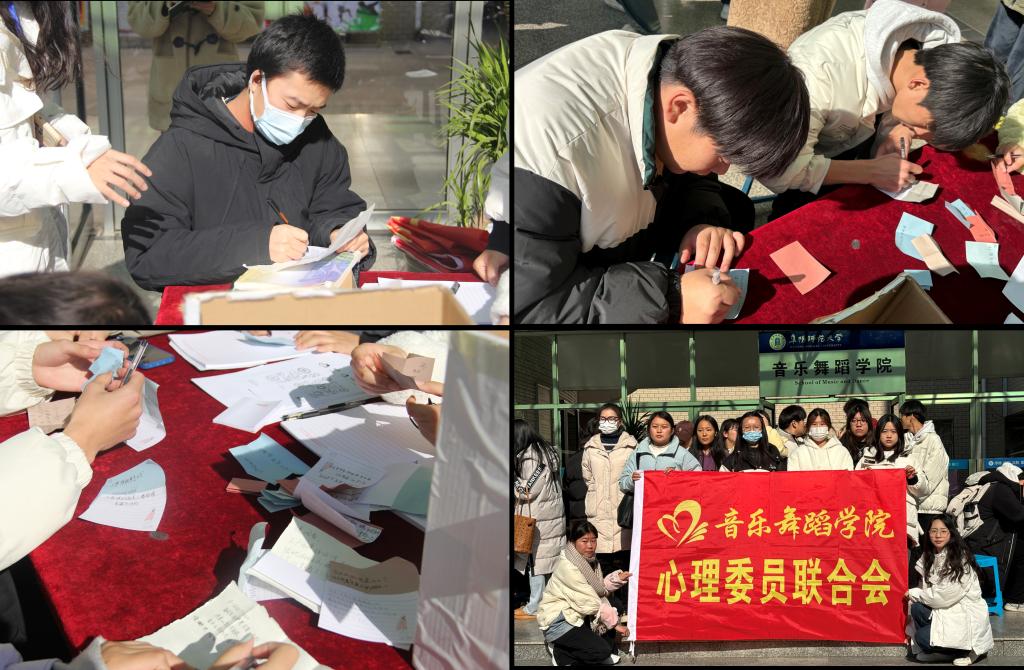为提升我院学生的自我心理调控与心理适应能力,增进与同学之间的沟通交流,营造积极向上的校园心理健康文化氛围,12月10日音乐舞蹈学院心理委员联合会与“一站式”学生社区功能型团支部联合开展“心理问答”活动。通过心理问答的形式,加强我院学生的心理健康教育,帮助我院学生解疑答惑。