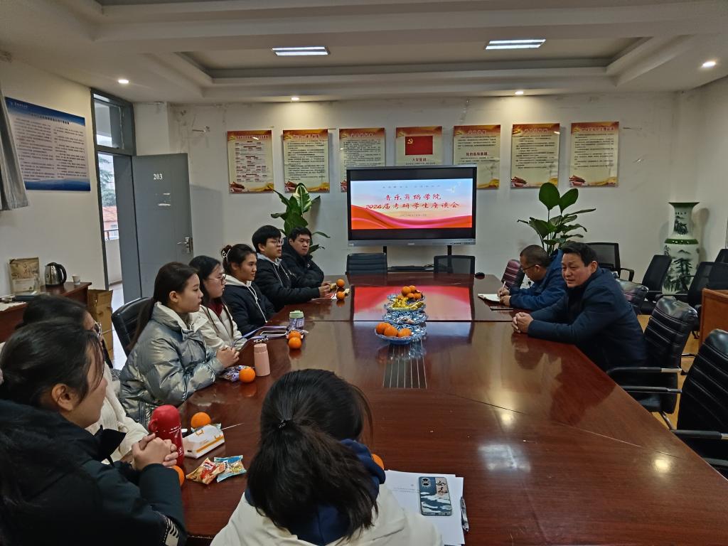 2024年国家硕士研究生招生考试开考在即,为鼓舞考研士气,坚定考研信心,12月12日下午,学院在203会议室举行2024届考研慰问暨考前座谈会,来自不同专业的8名学生代表参会。学院党委刘克思书记、马玉海副书记、毕业班辅导员出席本次会议。