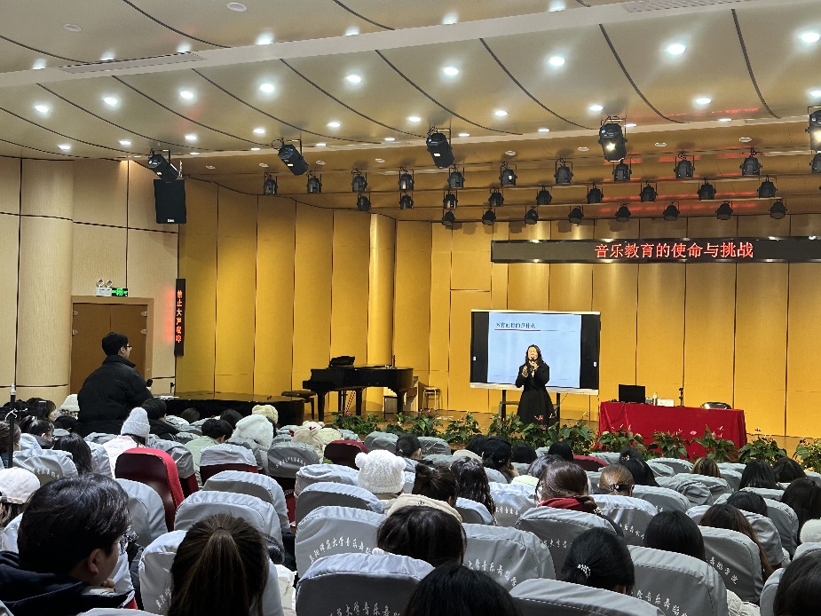 12月18日,音乐舞蹈学院邀请阜阳市教育科学研究所一级市音乐教研员、阜阳市骨干教师、阜阳市学科带头人,阜阳市继续教育培训主讲教师杨伟丽作“音乐教育的使命与挑战”、“保持专业成长,在音乐实践中提升自我”两场学术报告。报告会由学院副院长程敏主持,相关专业教师及全体21级、22级音乐学与音乐表演专业近400名学生参加活动。