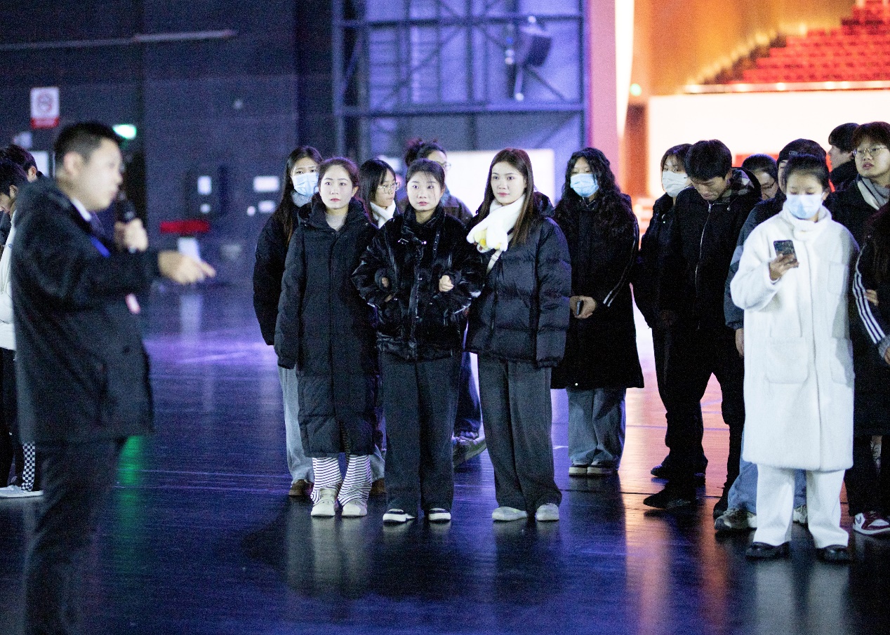 为进一步拓宽舞蹈学专业学生的专业视野,加深学生对舞台构造相关配套设施、设备的了解,提升舞台表演能力,12月18日上午,2021级和2022级舞蹈学专业全体同学在学院老师们的带领下前往阜阳大剧院参观学习。