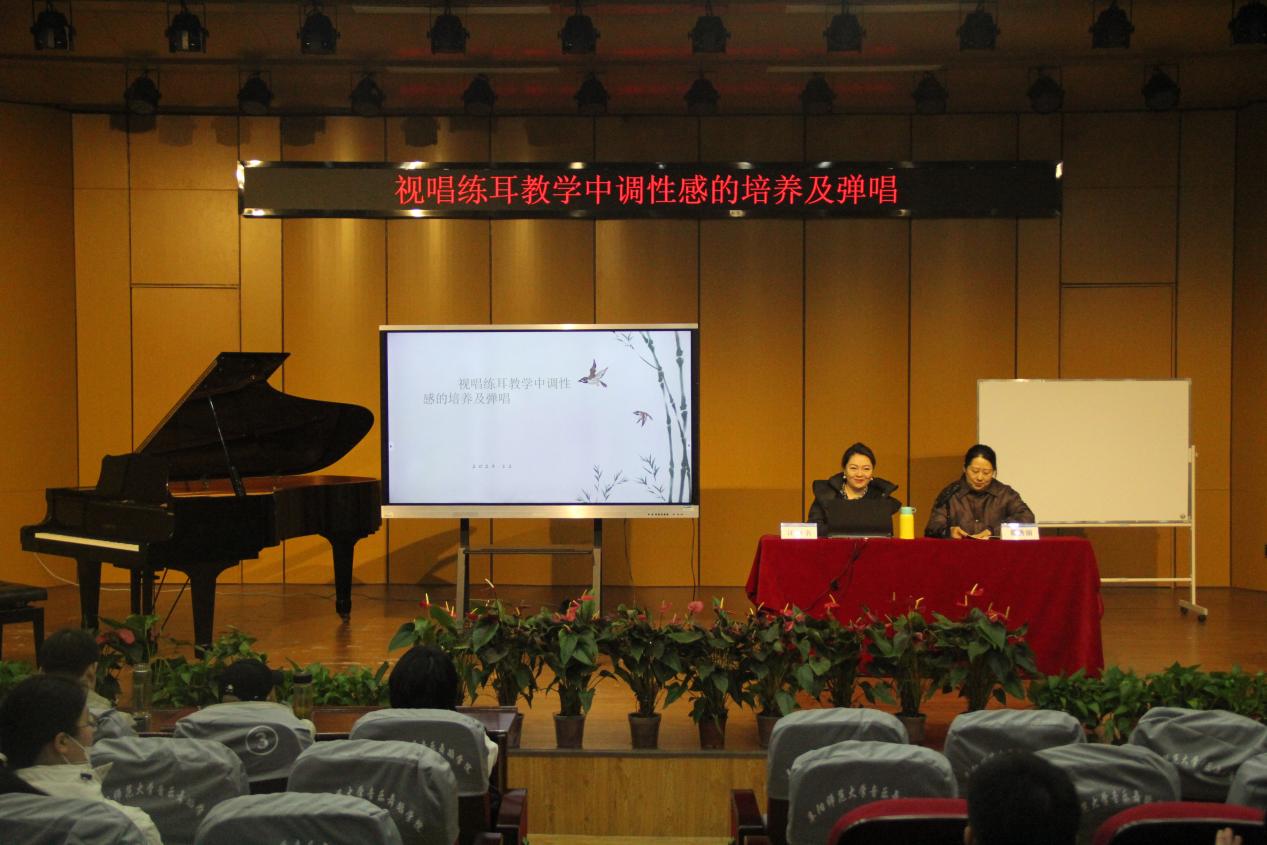 12月20日上午,音乐舞蹈学院邀请了上海音乐学院作曲指挥系视唱练耳教研室汪洹名老师来我院讲学,开展《视唱练耳教学中调性感的培养及弹唱》专题讲座。报告会由理论教研室主任鄢秀丽主持,学生与部分教师聆听了本次讲座。