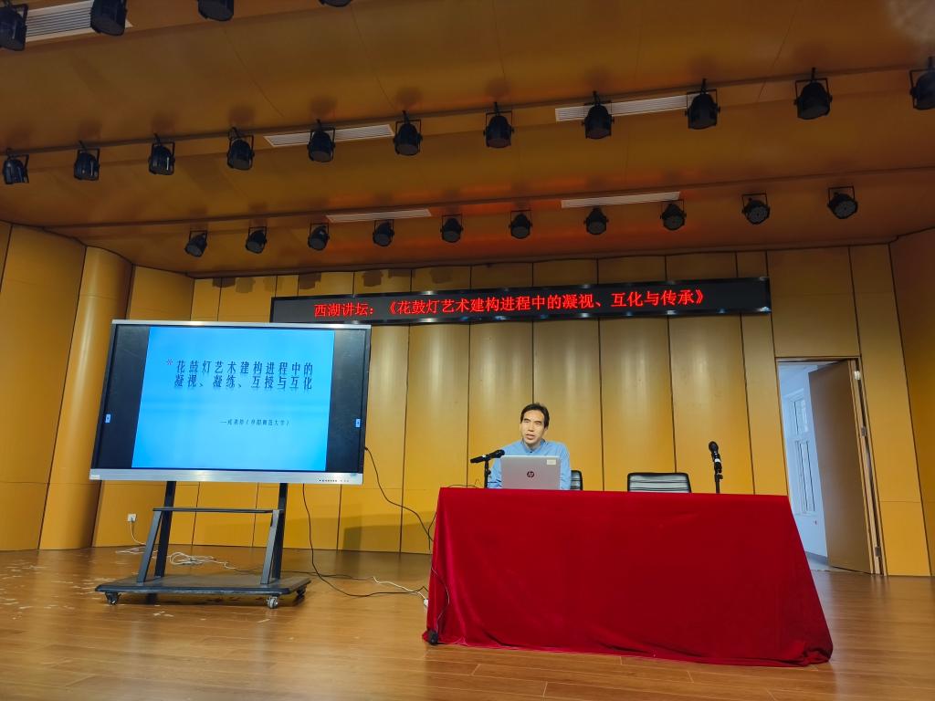 为进一步拓宽学生学术视野,增强专业素养,4月17日下午,音乐舞蹈学院戎龚停教授做客“西湖讲坛”,在清河校区韶华楼演出厅做《花鼓灯艺术建构进程中的凝视、互化与传承》的专题报告,我院舞蹈学专业全体老师和学生到场学习。