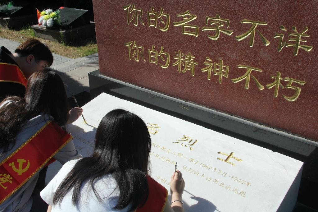 随后,在烈士陵园工作人员的组织引导下,党员手持画笔,饱蘸金色颜料,对每块烈士墓碑上的文字一笔一划地进行认真、仔细的涂描。为烈士墓碑描金,使烈士墓碑上的文字更加清晰醒目、永远闪亮。描金过程中,讲解员现场为党员讲述烈士的事迹,让他们了解革命烈士严守党纪、顽强拼搏、艰苦奋斗的精神。