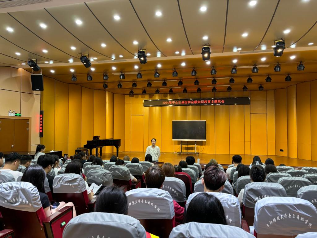 5月22日下午,音乐舞蹈学院在韶华楼报告厅召开2024届毕业生文明离校主题班会,毕业班辅导员胡玉然主持,全体2024届毕业生参加。