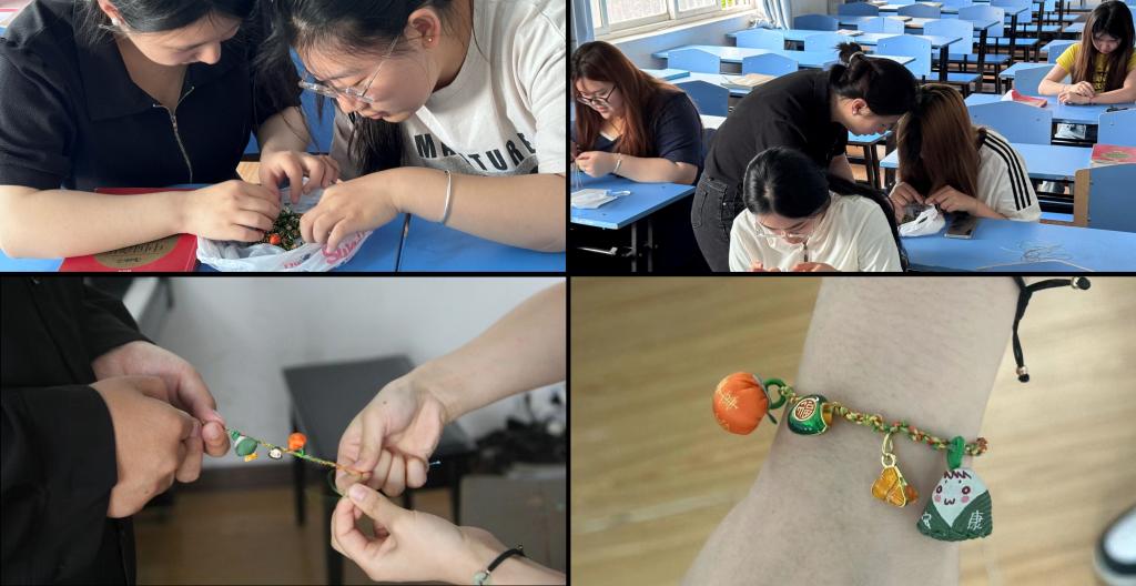 值端午节来临之际,为弘扬中华民族传统节日文化,促进同学之间的交流互动,营造浓厚的节日氛围,6月10日,音乐舞蹈学院举办以“粽叶飘香,彩绳系福”为主题的五彩绳编织活动。