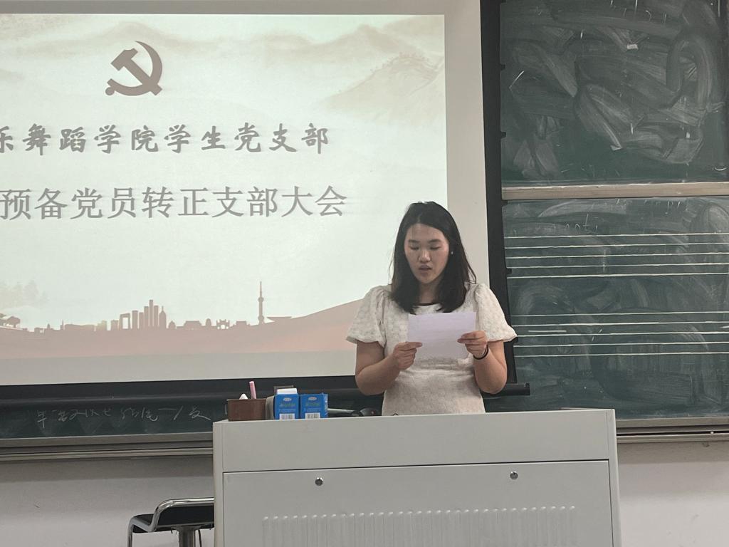 为进一步规范党员发展流程,严控党员发展质量,增强党员队伍生机与活力。6月17日下午,音乐舞蹈学院学生党支部预备党员转正支部大会在韶华楼107教室召开,支部组织委员余海涛主持,支部全体党员参加。