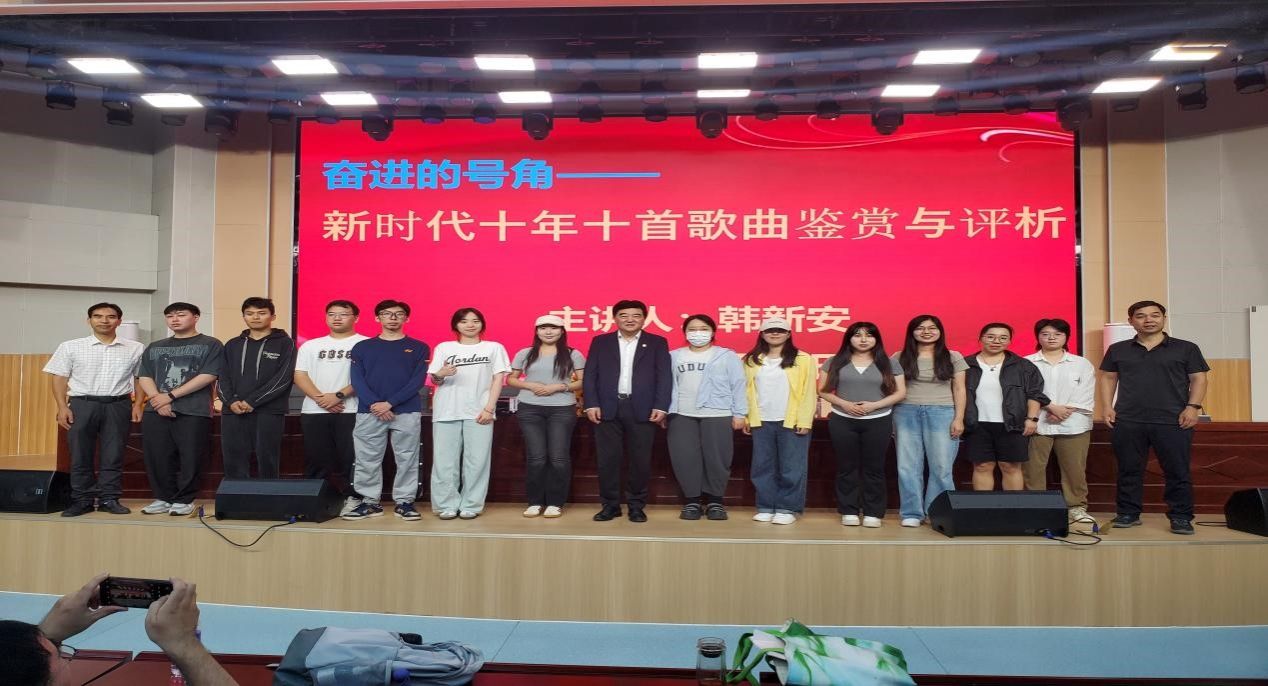 9月26日,我院研究生在戎龚停教授带领下,赴阜阳市第十一中学聆听中国音乐家协会分党组书记韩新安教授所作的题为“奋进的号角——新时代十年十首歌曲鉴赏与评析”的学术报告会,学院部分教师及研究生聆听了此次讲座。