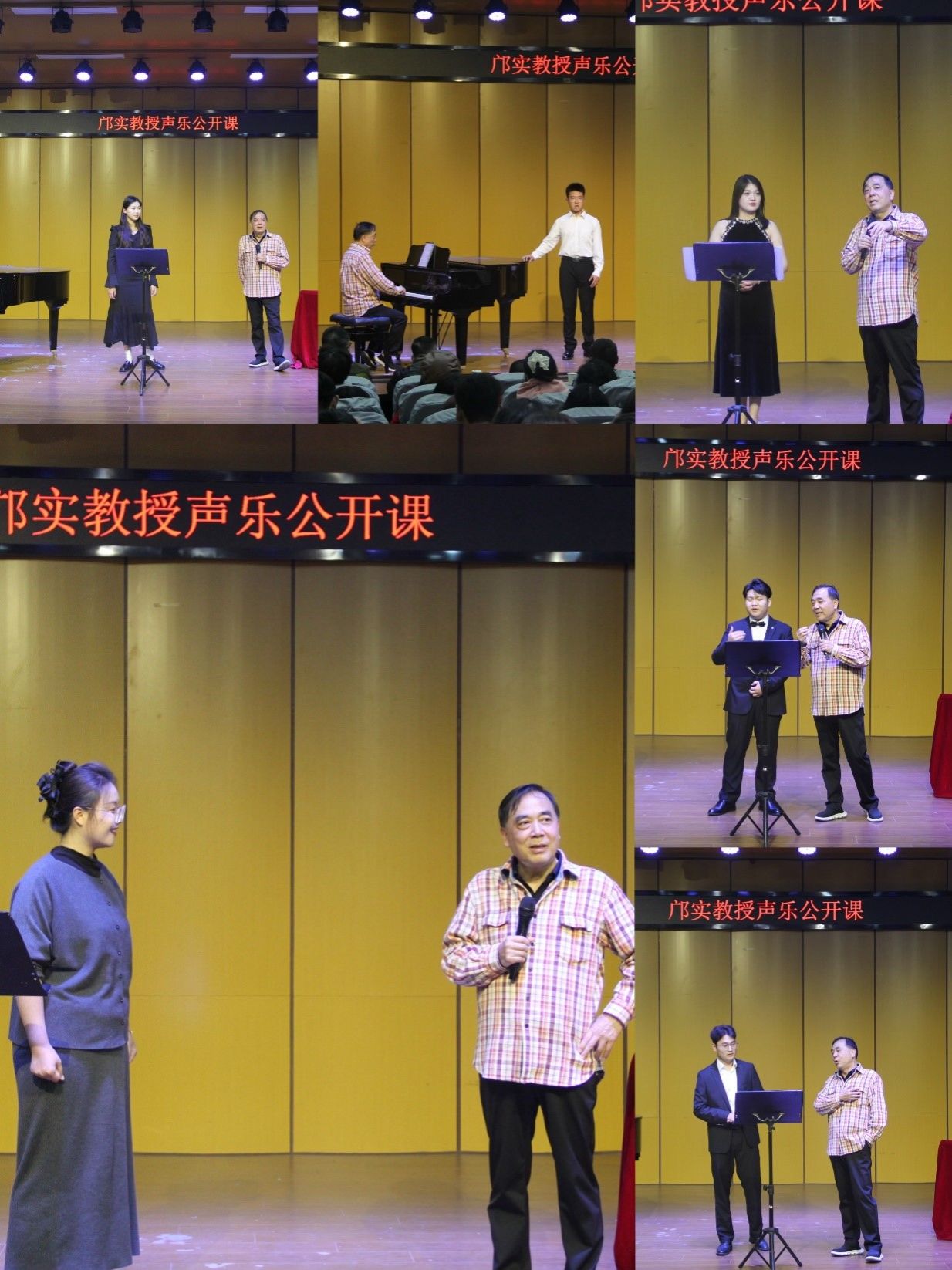 在公开课上,邝教授以其独特的教学风格——既幽默风趣又直击要害的专业点评,赢得了现场观众阵阵掌声。他先后对六位表演者进行了细致入微的指导:本科三年级学生周婧雅演唱了《Vissi d'arte, vissi d'amore为艺术为爱情》选自普契尼歌剧《Tosca托斯卡》;本科二年级学生李子尧演绎了徐志摩译词、张瑞谱曲的作品《歌》;本科三年级的王菲雨演唱了《啊,我的虎子哥》选自民族歌剧《原野》,大三学生韩尔康则带来了一首充满诗意的《春花秋月何时了》(词:李煜 曲:王龙);另一位大三学生王晨献唱了《桥》(词:于之 曲:陆在易)。最后,青年教师席亚倩以深情动人的表现完成了民族歌剧《沂蒙山》中的经典片段《沂蒙山永远的爹娘》,邝教授高度评价了所有参与者的表现,并特别提到我院钢琴伴奏的同学同样表现出色。