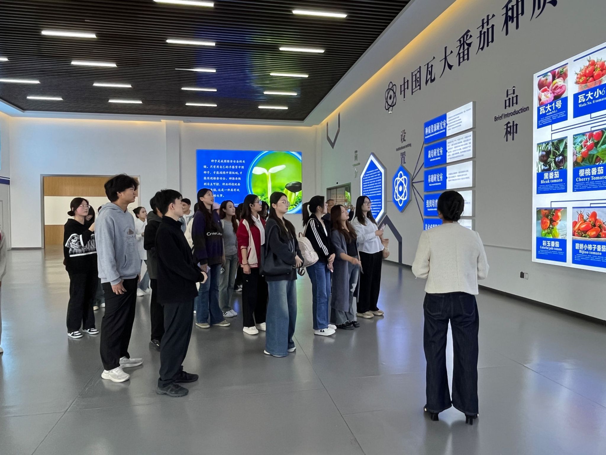 在公司闫主任的带领下,党员同志们依次参观了公司展厅、实验室和标准化种植基地,了解了瓦大公司的发展历程、研究成果和主推品种。参观过程中,闫主任讲解了集团及公司高质量发展情况和产品销售运营情况,并重点介绍了瓦大紧紧围绕培育具有自主知识产权的优良品种,开展种源“卡脖子”技术攻关,从源头上保障国家粮食安全所做出的一系列科研努力。学习过程中,同学们对瓦大番茄的关键技术及其市场前景表现出浓厚的兴趣,同工作人员主动咨询,积极交流。