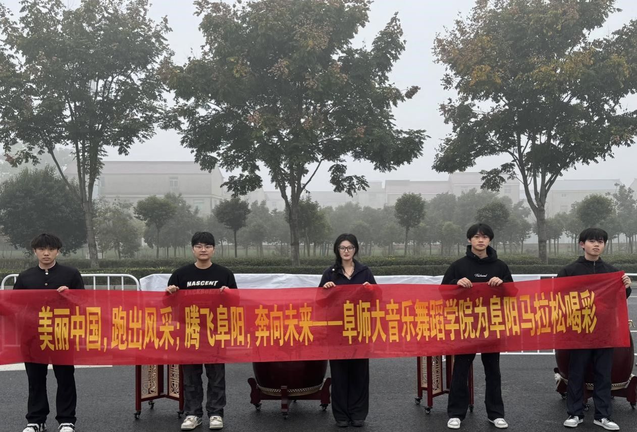 清晨,由打击乐专业5名学生组成的志愿小队,准时赶到文化站点,用民族鼓的鼓点迎接每一位参赛选手,为他们呐喊助威。在气势恢宏的鼓声中,各位参赛选手奋力追逐,展现出了不屈不挠的竞技精神,同时,在他们的笑容中,也感受到了阜阳马拉松的快乐。
